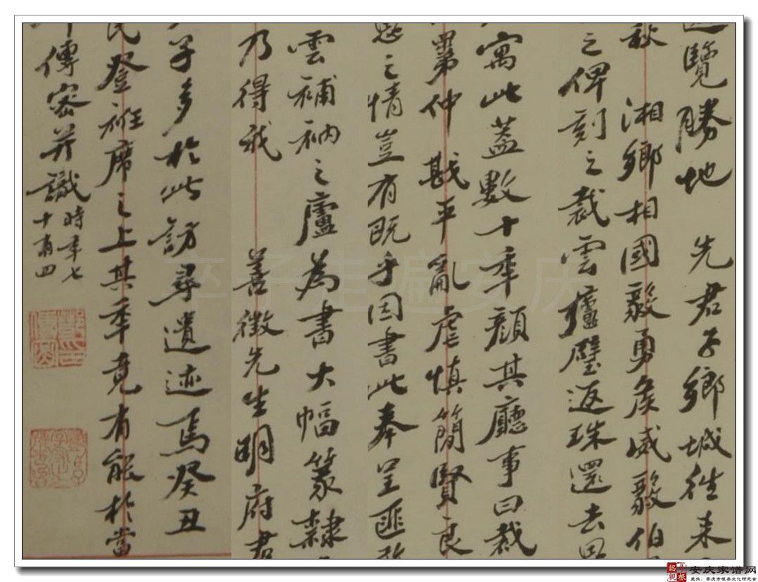 这段题识的开篇介绍了安庆天花禅院周边的名胜:大小龙山、百子山、鸭儿塘、石门湖,瀼泉等,并提及“先君子”(指其父邓石如)当年从乡间进城每每住在天花禅院,这与文献记载相符。而又补充了一条重要史料:邓石如曾为天花禅院写过篆书和隶书“裁云补衲之庐”两幅大字,并刻于壁上,后来好古的人常来此寻访、观摩。题识的后半部分,又提到了诸多重大事件和重要人物:癸丑孟陬即为咸丰三年(1853)正月,太平军攻陷安庆,战火中,天花禅院难逃一劫,院中的邓石如书法作品自然不知踪迹。辛酉(1861年)之秋,曾国藩、曾国荃兄弟率湘军击败太平军,收复安庆,并广纳贤良,起用“善征先生”来治理安庆。“善征先生”就是贵州独山人莫祥芝(1827-1890),字善征,曾任怀宁县知县,他与其兄莫友芝都是曾国藩幕府中的重要人物,精通古籍、书画,好收藏。