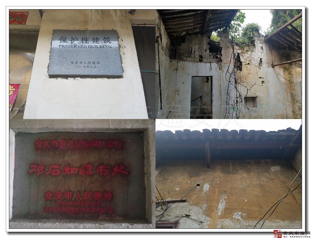 晚清民国时期,来天花禅院探寻邓石如遗踪的文人着实不少,相关记载散见于当时人的文集中。然而,经过抗日战争、文化大革命的沧桑岁月,“邓石如读书处”几乎不为人知了。直到1983年,它才又被安庆著名文史学者金杏村先生发现,金先生在《一代高人留胜迹——“完白山人读书处”》一文中说:“去年我参与大观区编史修志工作,为调查大观区的名胜古迹,曾登大观亭旧址,在平坦如坻的旧址俯瞰,破败的天花庵、赤帝庙一一映入眼帘,可是出我意外的‘完白山人读书处’,仍完整的保存在天花庵之后坡上……循着赤帝庙前石级而上,走进‘读书处’。”