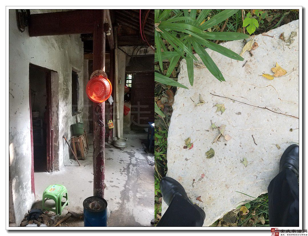 痘神庵“邓石如读书处”的房基与房前空地原应该为邓石如读书处,首先来看两张老照片,照片是1959年安徽文物部门调查各地古迹时所拍摄的。第一张照片上是一间茅草屋,屋前放着两架纺车,还有一只母鸡在觅食,注意细看屋前与屋侧摆放着一些条石等石构件,旁边还码放着一堆青砖。照片背面文字注:“房基与房前空地原为邓石如读书处”。从那次调查情况看,“邓石如读书处”应该在1959年前就已经被拆除了。